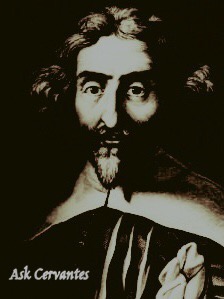 About Ask Cervantes: I don’t claim to be an expert, but I admire Cervantes above all authors. Fuck Hemingway’s bravado, Cervantes was the shit. He lost an arm in the most biggest battle of his age, Lepanto. He spent time in a Moorish prison and debtor’s prison. He might have been part Jewish (not long after the Jews had been expelled from Spain), and even if not he was definitely an outsider. Likely little of his work would have ever seen the light of day if it weren’t for wealthy benefactors. And he gave the world so much: don Quixote and Sancho Panza, but also Dulcinea and Rocinantes, Ciprion and Berganza, so much more. He didn’t just invent stories; he built modern consciousness. My friend, if you want to really write look at Cervantes. So tonight I’m launching the Cervantes advice column: Ask Cervantes. If you have a question for Cervantes, let me know!